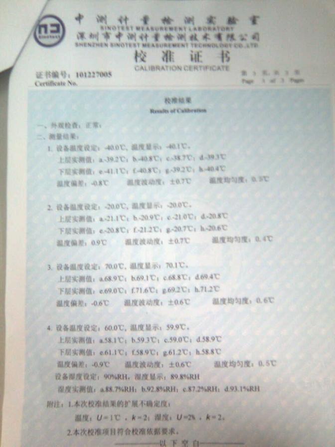 高低溫濕熱試驗箱校準證書-深圳中測計量-深圳精銳通