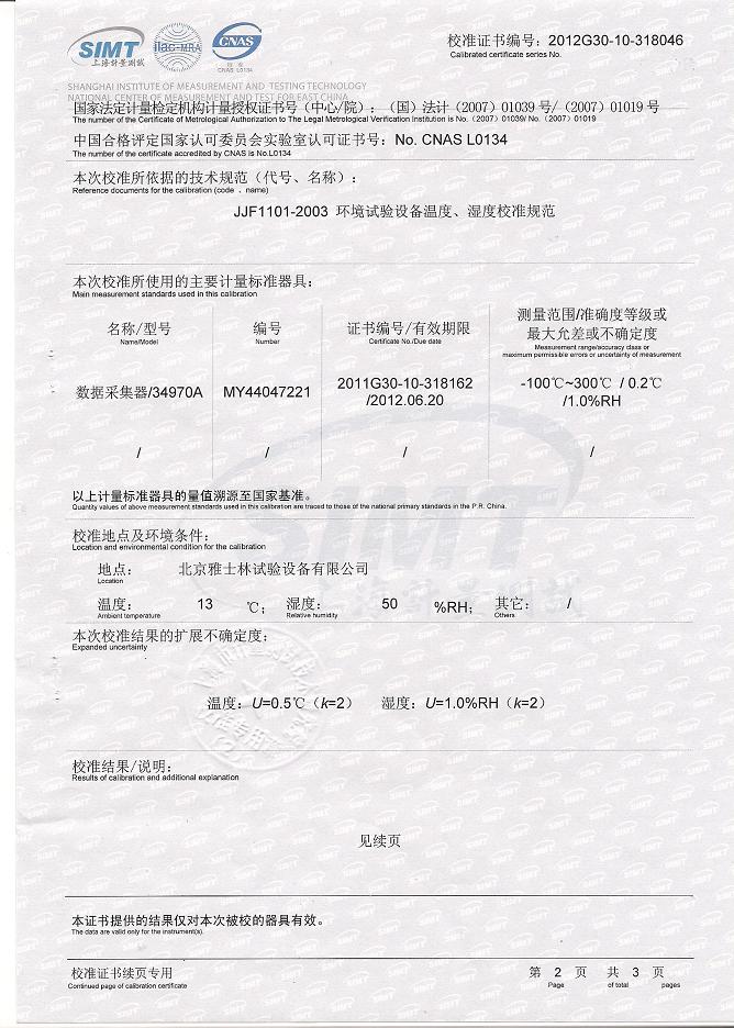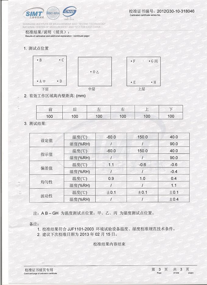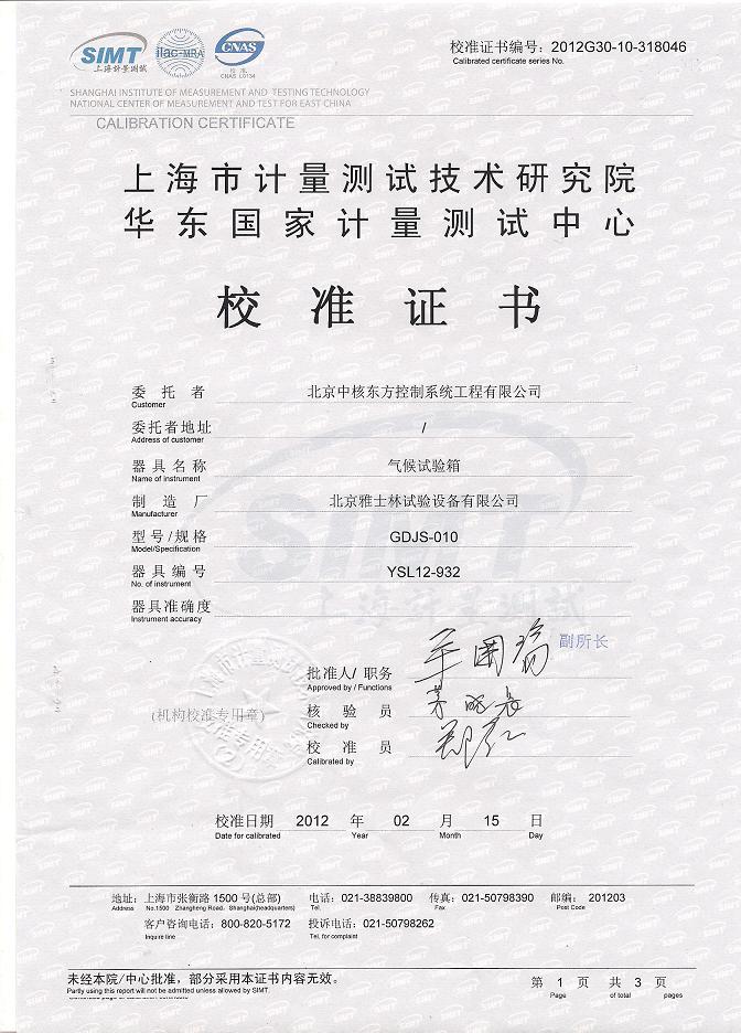 >>氣候試驗(yàn)箱校準(zhǔn)證書-上海計(jì)量院-中核控制2